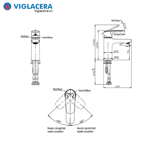 - Vòi chậu nóng lạnh, lắp đặt trên 1 lỗ